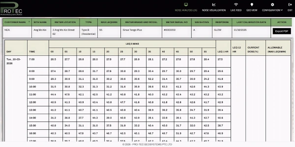 The Real Time Noise Monitoring System Singapore offered by Pro-Tec Geo systems allows project stakeholders to monitor site noise levels 24 hours a day through an online platform. The monitoring system automatically records noise levels and provides graphical data, historical records, and real-time alerts whenever noise levels exceed predefined limits.